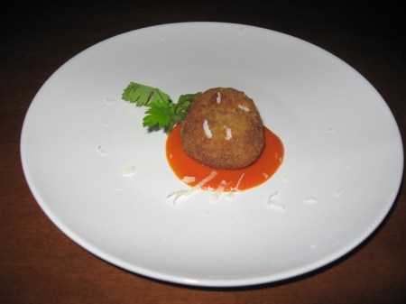 Per il servizio: disporre al centro di un piatto piano bianco un cucchiaio di salsa vellutata di pomodorini del piennolo, porre al suo centro una polpettina, una manciata di scaglie di parmigiano completerà la preparazione, un ciuffetto di prezzemolo fresco come decorazione. Piatto di sicuro appeal, come antipasto o come stuzzichino.