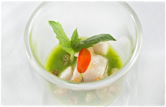 Il mare, la terra, una rincorsa senza tregua. Il Raviolo di Mozzarella con scarola e Palamita, sapori netti, unici, profondi, tra i nostri più tradizionali che fanno capolino in questo riuscitissimo piatto di Andrea Migliaccio, frutto del lavoro di un anno di prove e riprove.