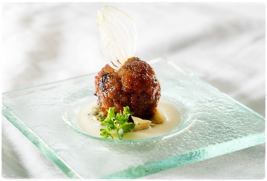 Polpetta fritta di Agnello con Uvetta, Scarola e Pinoli su crema di Cipollotto Nocerino. Sapori autentici che esaltano tutta la verve del Perlé Rosé, dal sorso un po’ meno teso delle precedenti uscite ma sempre impareggiabile per bouquet e piacevolezza di beva!