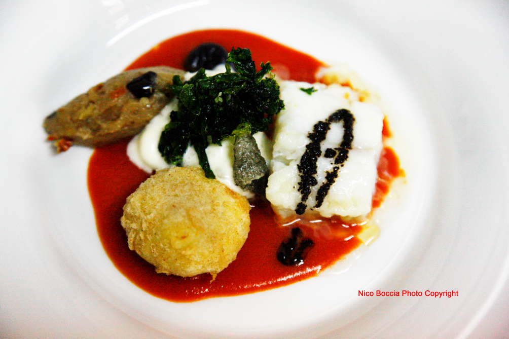 La cucina di Alfonso conserva il segno indelebile di mamma Grazia, quella linea retta tracciata nel dna che trova la sua origine direttamente nella memoria storica della famiglia e che si lancia nel futuro in maniera instancabile, perpetua, ogni giorno protesa ad una nuova emozione cullando nella semplicità, nella purezza degli ingredienti, una esplosione di profumi e sapori indentitari unici, inconfondibili, straordinari. Prendete ad esempio “O’ Cuoccio” – la zuppa di pesce secondo Alfonso – un piatto incredibile, che eccelle in tutto e per tutto per la sua infinita lunghezza gustolfattiva, il suo sapore sembrerà non lasciarvi mai, nemmeno dopo il secondo bicchiere di vino; Ho provato, quest’anno, lo stesso godimento palatale solo al cospetto della Minestra di pasta di Gragnano di Gennaro Esposito, a conferma, se ce ne fosse stato bisogno, che le origini, per chi fa cucina a certi livelli “gurmè” rappresentano una grande opportunità e non un intralcio al successo globale, come qualcuno, più di una volta, ha voluto far passare come messaggio negli ultimi tempi.