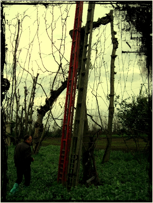 E’ una vocazione antica, una tradizione ultramillenaria, una eredità importante, ingombrante, pesante, di fatto complicatissima da gestire, da portare avanti, anche per questo destinata prima o poi inesorabilmente a finire; e molteplici le concause: anzitutto, questo sistema di allevamento, per quanto suggestivo, è improponibile nella moderna gestione economica del vigneto. La sola vendemmia infatti costa di media almeno tre volte tanto una “normale” raccolta. Poi c’è l’abilità degli “uomini ragno” nella raccolta delle uve, merce rara: contadini esperti, i soli capaci di armeggiare con le altissime scale costruite a misura d’uomo per arrampicarsi agilmente lungo gli altissimi filari per cogliere i grappoli sparsi in lungo e in largo sulle “pareti”. Un lavoro particolare, immane, che naturalmente continua anche nella potatura, nel “ricamo” dell’alberata, un processo di rilegatura dei tralci complesso quanto inestricabile. Incredibile!