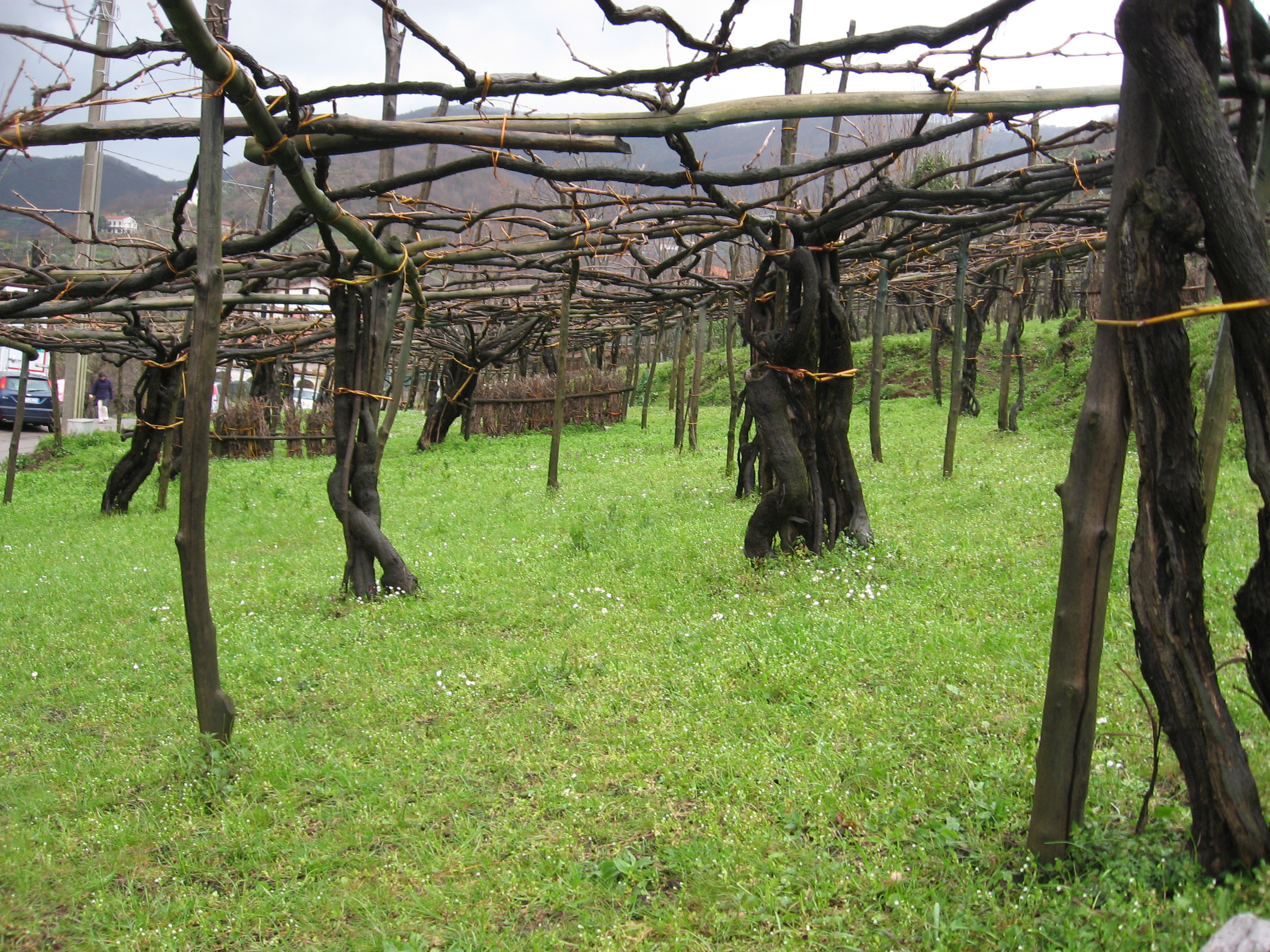 Basterebbero queste poche parole per descrivere la particolare suggestione che si prova una volta giunti in questo pezzo di terra strappato letteralmente alla montagna, intriso di vigne centenarie che rincorrono se stesse in un vortice a raggiera senza soluzione di continuità; Ho provato, con l’amico Gerardo Vernazzaro a seguirne qualcuno di questi tralci, ai primi quattro-cinque metri ci siamo fermati, e guardandoci negli occhi, con la pioggia battente sul viso, avremmo potuto pure piangere di sano stupore, nessuno dei convenuti se ne sarebbe accorto, ed invece abbiamo riso, come dei bambini irrequieti, di fronte ad una scoperta eccezionale, un museo antropologico della viticoltura, vivo, con in seno tutto ed il contrario di tutte le regole imposte dalla moderna vitienologia: qui termini come sesti d’impianto, densità dei ceppi e varie forme di allevamento sono del tutto fuori dall’ordinario!