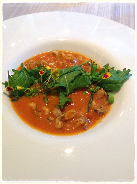 Ci arriva quindi la Zuppa di Maruzzielli, o lumachine di mare, un fuori carta giustamente ‘forte’ che mi riporta all’infanzia e a certe domeniche in cui il vero e proprio ‘spasso’ era tirarle vie dal guscio con l’ago di mamma, stando però attenti a che non te le fregassero una volta ‘pulite’. Piatto di straordinaria succulenza.