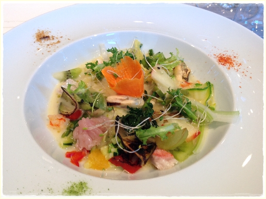 Nell’ultimo mese ci sono tornato due volte, dapprima con un po’ di amici per festeggiare la chiusura della stagione a Capri, poi giusto una settimana fa per conto mio. Due momenti da mettere qui sul diario, due momenti colmi di suggestioni, colori, profumi e di straordinaria gioia, quella che viene fuori da ogni piatto di Marianna grazie anche all’armonia che regna in sala con il buon lavoro di Pino, Carmine e Giannantonio.