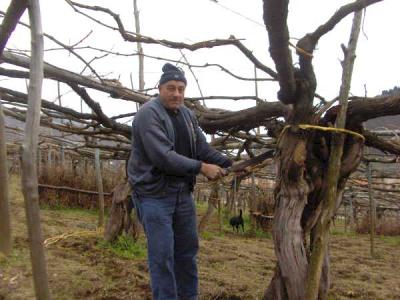 Località Madonna del Carmine, uno dei tralci ultracentenari di tintore nella vigna di Alfonso Arpino, Monte di Grazia. E’ incredibile la sostanza di un ceppo che in qualsiasi altro posto del mondo avrebbero estirpato da tempo, non qui, non dove sono patrimonio storico inestimabile.