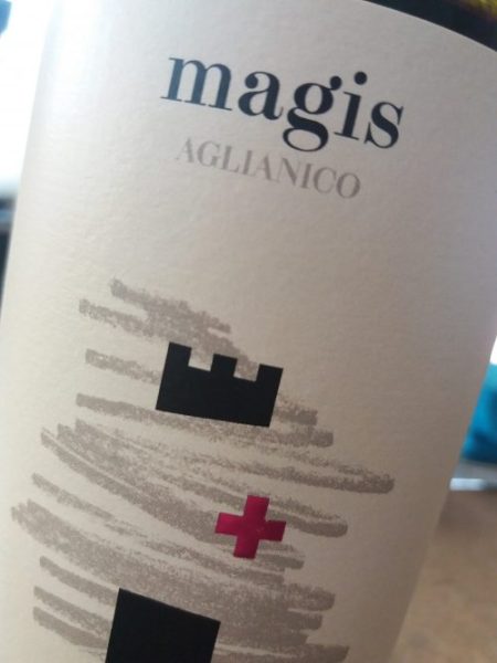 Poppano, località dove è nata e sta Antico Castello, non era certamente tra i primi posti dove andare alla ricerca delle terre d’elezione in Irpinia, pur situata a San Mango sul Calore, in pieno areale Taurasi docg, eppure qui Francesco e Chiara Romano hanno saputo, con forza e determinazione, dare vita ad una bellissima realtà, scegliendo di vinificare sin dal principio solo uve di proprietà, prevalentemente Aglianico, coltivate su terreni argillosi calcarei, con esposizioni ottimali sino a raggiungere in alcuni punti i 450 metri s.l.m., che si avvantaggiano anche del benefico effetto delle acque del fiume Calore a valle; tutto questo con una bella cantina funzionale, sempre aperta alle visite, dove oltre a dei buonissimi vini, come questo Magis duemilaquindici, sono capaci di tirare fuori dal cilindro anche alcuni prodotti molto particolari come l’Amarenico, un suggestivo liquore a base di Aglianico e foglie di amarene davvero delizioso (una sorta di Ratafià).