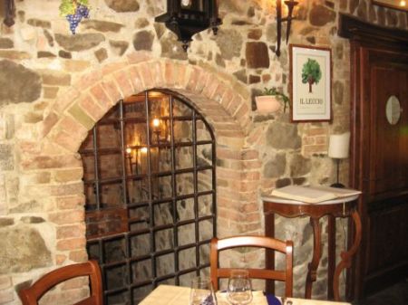 E’ quindi un turismo particolare, di enomaniaci, che garantisce un flusso di massa debordante in alcuni momenti dell’anno ma che appena dopo la vendemmia va assopendosi sino ad addormentarsi del tutto, sino alla Pasqua successiva. Al quale si è contrapposto quindi una offerta senza troppe variazioni sul tema. Ok, ma gli indigeni, che fanno, non escono mai? Si direbbe di sì, ovvero quando escono non vivono il circondario se non quei due o tre indirizzi sicuri e comunque tendenzialmente preferiscono andare fuori zona. E allora, dove andare a mangiare, per esempio in gennaio? Beh, c’è un solo posto dove assaporare i vecchi e gustosi sapori della cucina tradizionale locale, basta fare un salto a Sant’Angelo in Colle, al ristorante Il Leccio.